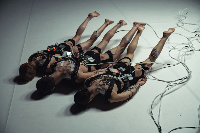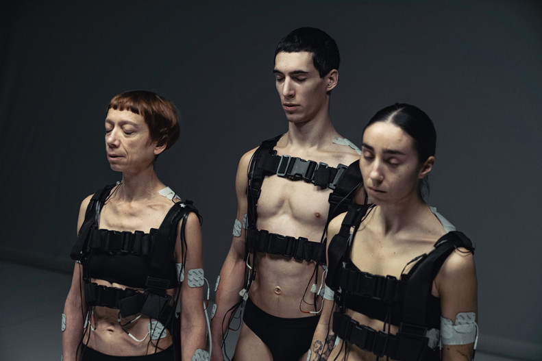 Au travers d'une installation qui utilisera l'EMS (Electric Muscle Stimulation) au contact direct de trois corps, le chorégraphe désire ici mettre en mouvement trois interprètes grâce aux impulsions électriques qui stimulent différents muscles. “score” vise ainsi à poser des questions éthiques sur les usages des technologies, celles qui surpassent et concurrencent le corps humain, remettant en question sa pertinence dans un contexte socio-politique et anthropologique.